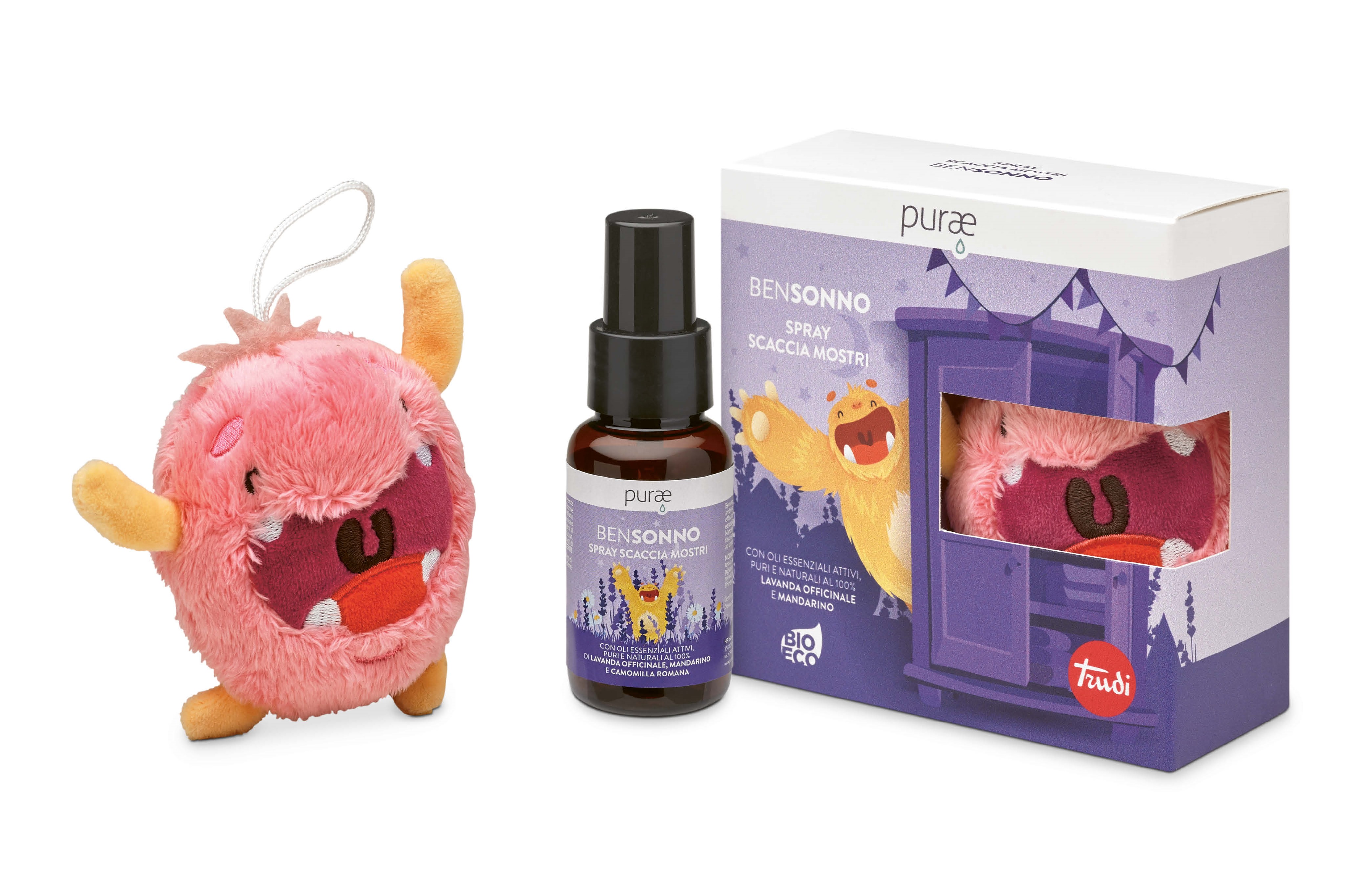 Uno spray per ambienti e tessuti perfetto per creare una routine serale divertente ed efficace per conciliare il sonno del tuo bambino con un bellissimo peluche Trudi di colore rosa!