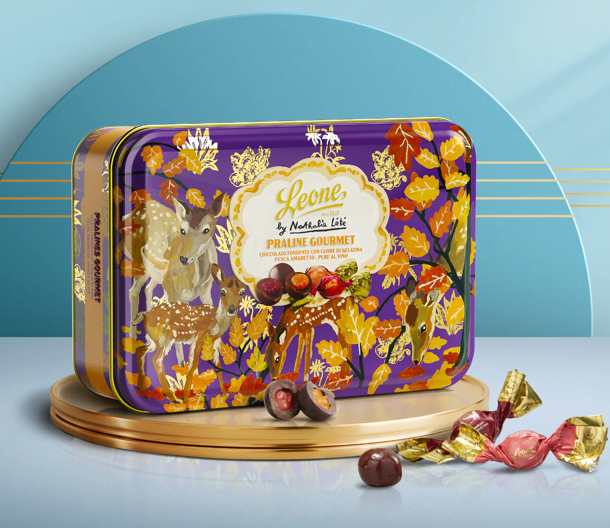 Il mondo leggero e colorato di Nathalie Lété incontra la dolcezza delle creazioni Leone con un’incantevole latta in edizione limitata.