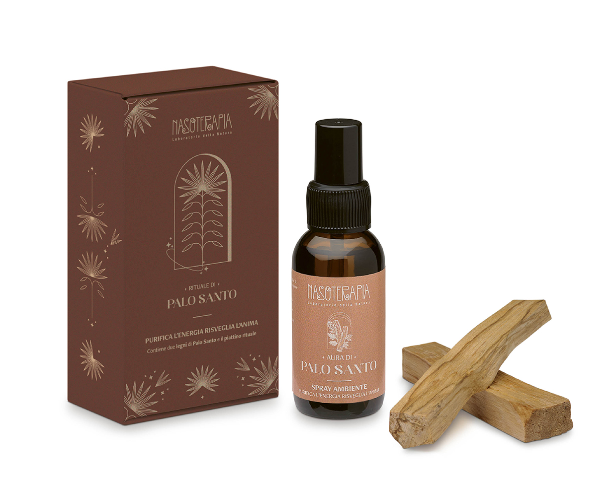 – Aura di Palo Santo Spray purificatore da 60 ml, frutto dell’armonia di note sottili che esaltano l’aroma sacro del Palo Santo (fragranza amplificata dalla presenza di patchouli e sandalo)