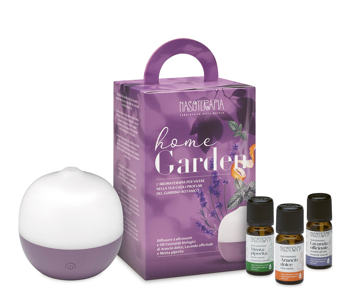 Il Diffusore a Ultrasuoni Home Garden, con i suoi 3 oli essenziali biologici, ti introduce al mondo di Nasoterapia, dove il benessere della natura è a portata di goccia.