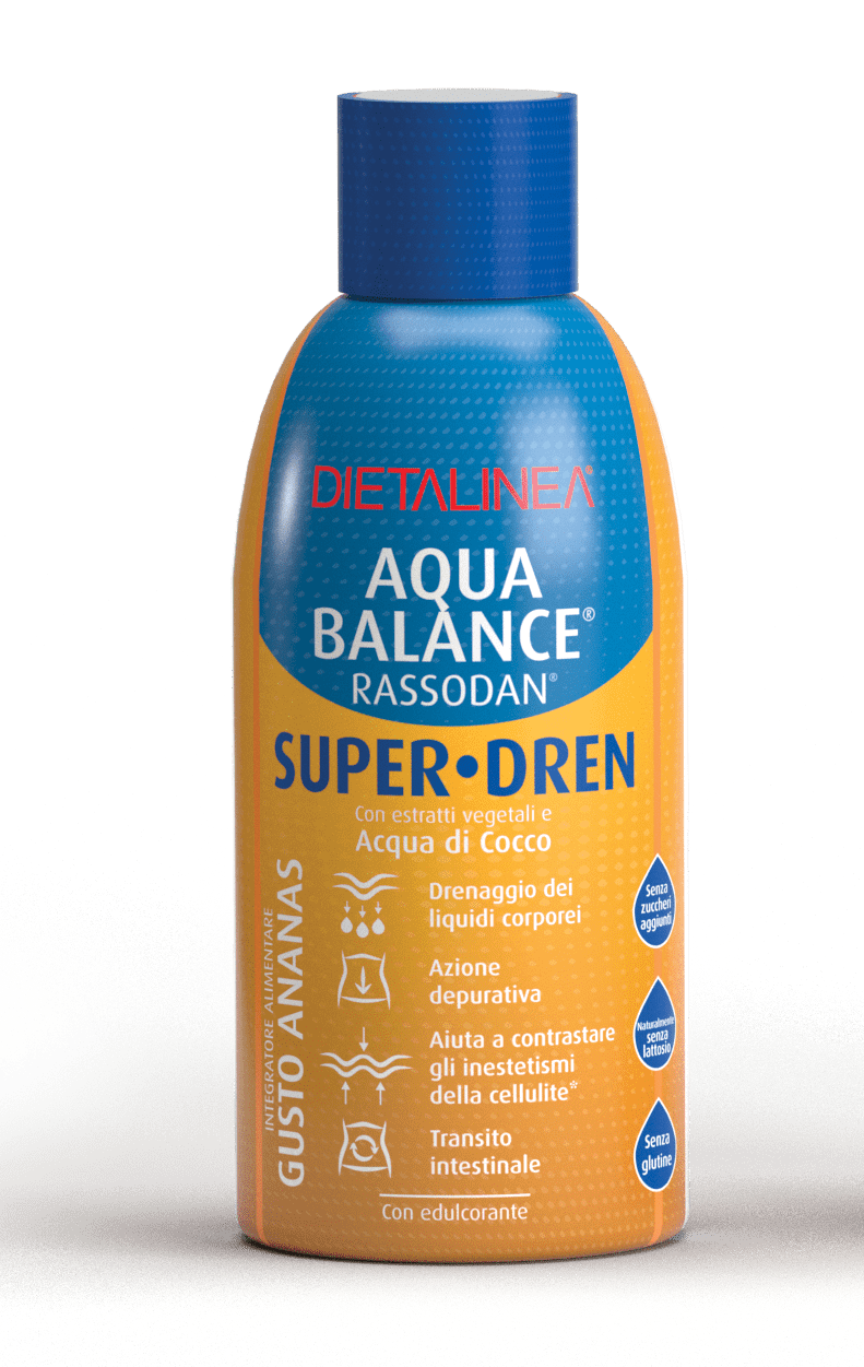 Per questo Dietalinea® ha rivoluzionato la sua gamma di integratori alimentari Aqua Balance Rassodan dando vita alla nuova linea di prodotti Aqua Balance Rassodan Super Dren!