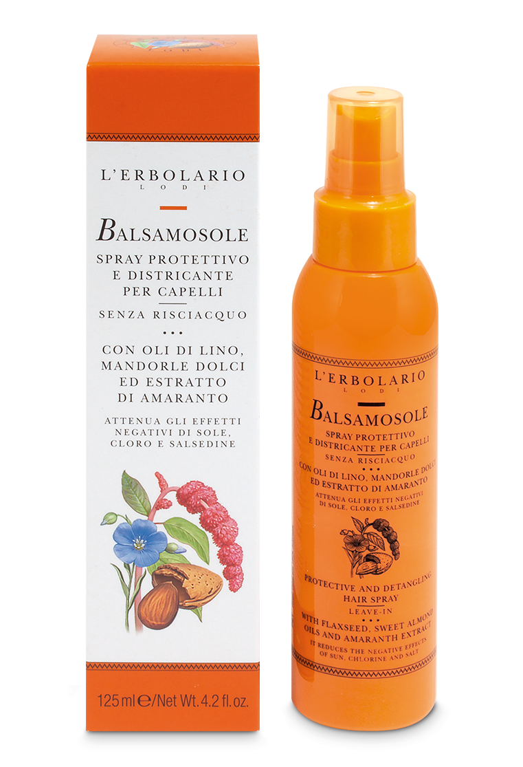 Basta affidarli a questo BalsamoSole: uno spray leggerissimo, che offre un trattamento istantaneo per proteggere e districare meravigliosamente le chiome. Un semplice gesto che apporta le virtù di ottimi attivi vegetali: gli Oli di Lino e Mandorle dolci svolgono un’azione nutriente e ristrutturante che disciplina i capelli crespi, mentre l’estratto di semi di Amaranto dona tanta morbidezza, brillantezza e corposità. E una piacevolissima docilità al pettine!