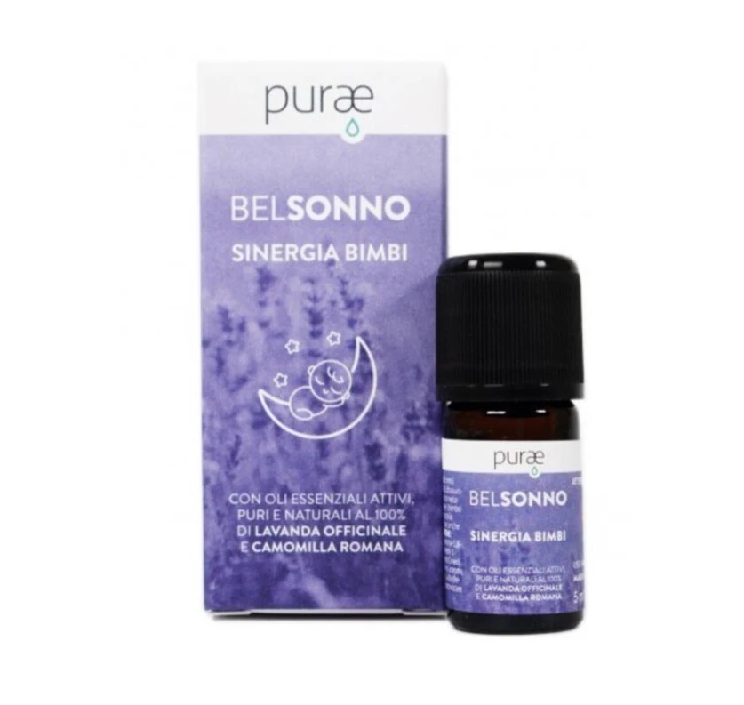 Belsonno Bimbi è una sinergia per la diffusione ambientale, appositamente formulata per i più piccoli, a base di oli essenziali puri e naturali al 100% di Lavanda officinale, Camomilla e Mandarino.