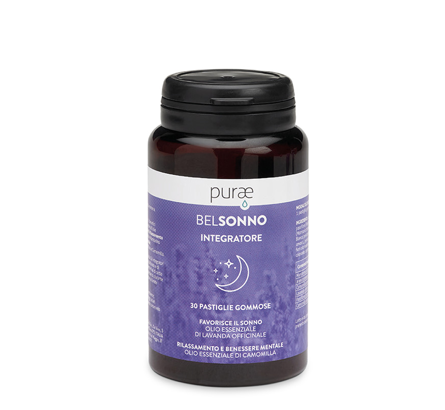 Purae Bensonno Integratore Alimentare favorisce il sonno e il rilassamento e benessere mentale. A base di oli essenziali di Lavanda officinale e di Camomilla.