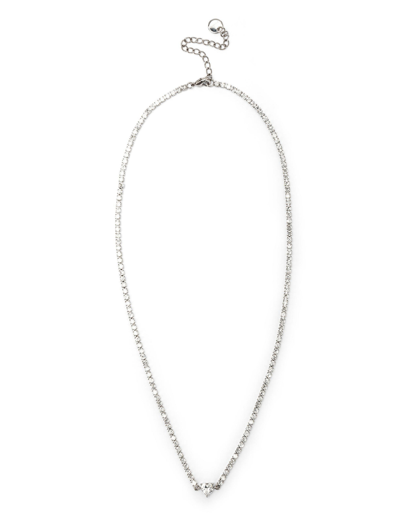 Collana tennis con zircone centrale taglio cuore.