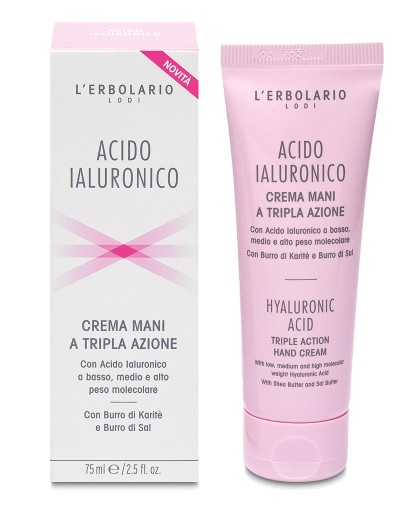 Crema Mani a Tripla Azione con Acido Ialuronico e Burri di Karitè e Sal