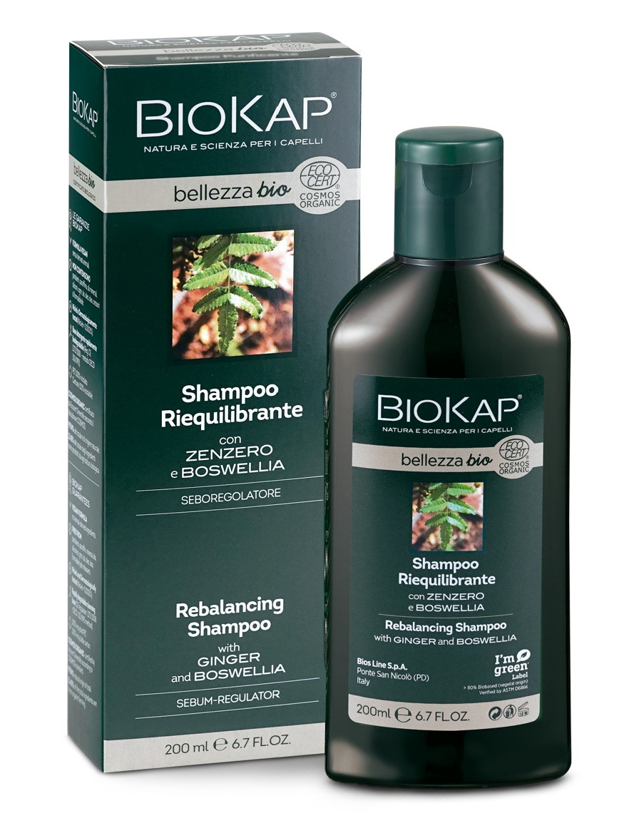 Lo Shampoo Riequilibrante Biokap Bellezza bio deterge delicatamente e, grazie al complesso ricavato da Zenzero, Boswellia e Uva rossa, aiuta la cute a ritrovare il suo equilibrio ottimale, contrastando l’eccesso di sebo.