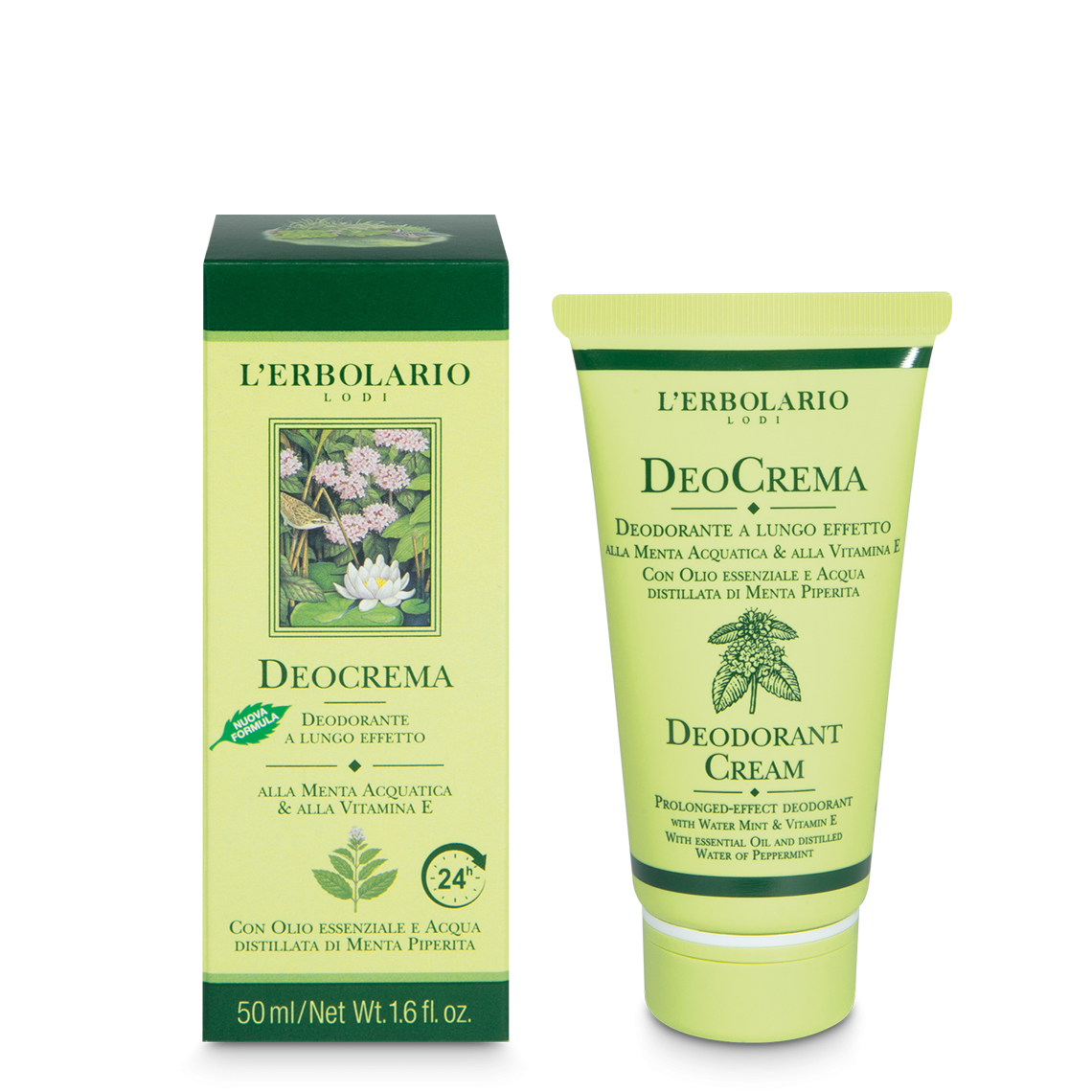 Due diverse specie di Menta, l’acquatica e la piperita, regalano a questa delicatissima emulsione la loro forza, che, unita alla capacità antiossidante della Vitamina E nonché all’azione dermopurificante e astringente dell’acqua di Rosmarino, sa assicurare giornate intere di assoluta freschezza, anche nei periodi di più intenso dinamismo e nei mesi di grande calura. In completa sicurezza, perché DeoCrema, invisibile e confortevole, scongiura il degradarsi del sudore, e quindi la formazione di cattivi odori.