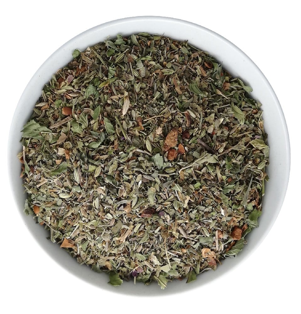 Tisana aromatica da bere calda dopo i pasti per ridurre la formazione di gas intestinali, senza dolcificare.