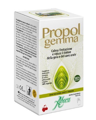 Propolgemma è un complesso molecolare frutto della ricerca Aboca, composto da resine, polisaccaridi e lignine ottenuto da gemme di pioppo nero, dalla cui resina le api ricavano la Propoli europea. Grazie a un particolare processo estrattivo multifrazione, Propolgemma si caratterizza per la presenza dei componenti principali tipici della propoli uniti a composti funzionali del tessuto vegetale della gemma di pioppo. La ricerca Aboca ha sviluppato così un complesso molecolare con particolari capacità di protezione delle mucose del cavo orofaringeo.