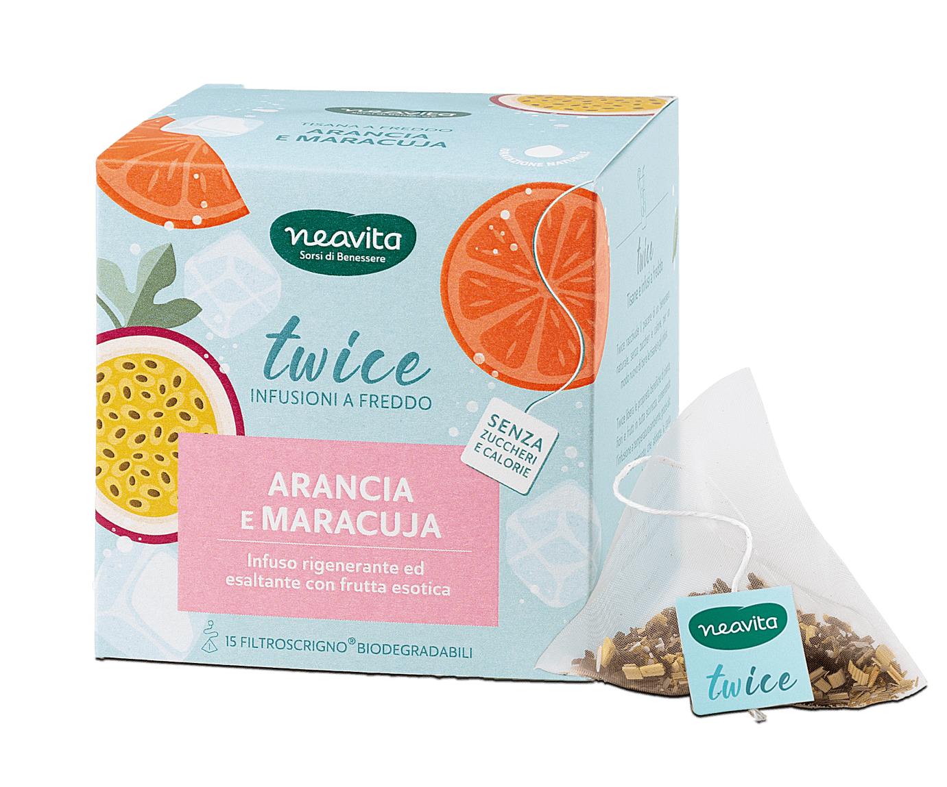fiori di ibisco, aromi naturali, scorze d’arancia, bacche di rosa canina, radici di liquirizia, mele, foglie di stevia, succo di maracuja granulato.